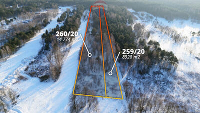 Na sprzedaż działka rolno-leśna o łącznej powierzchni 2,3766 ha (23 766 m²), składająca się z dwóch działek: ...
